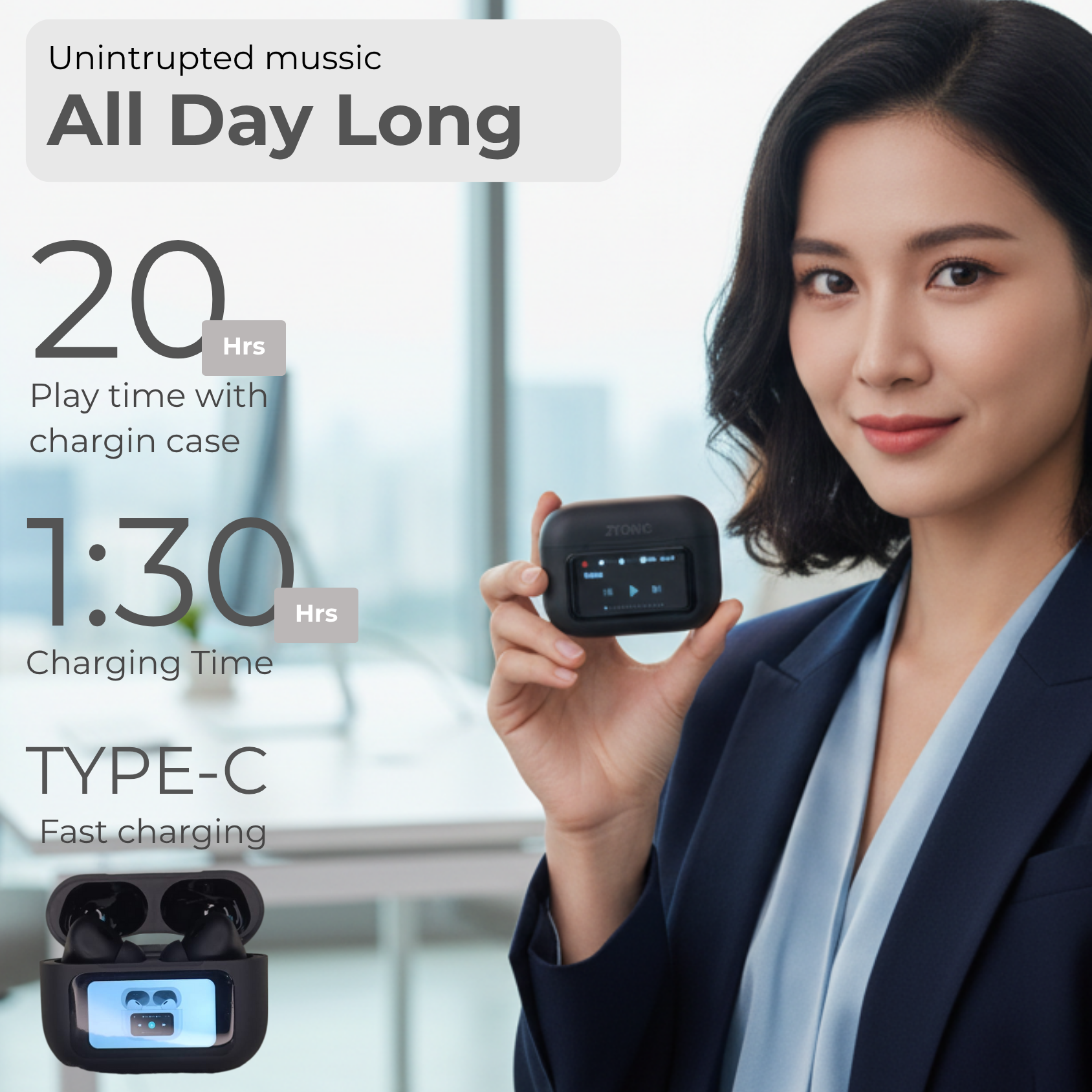 - Charging the Earbuds in the Case 1.5 hours